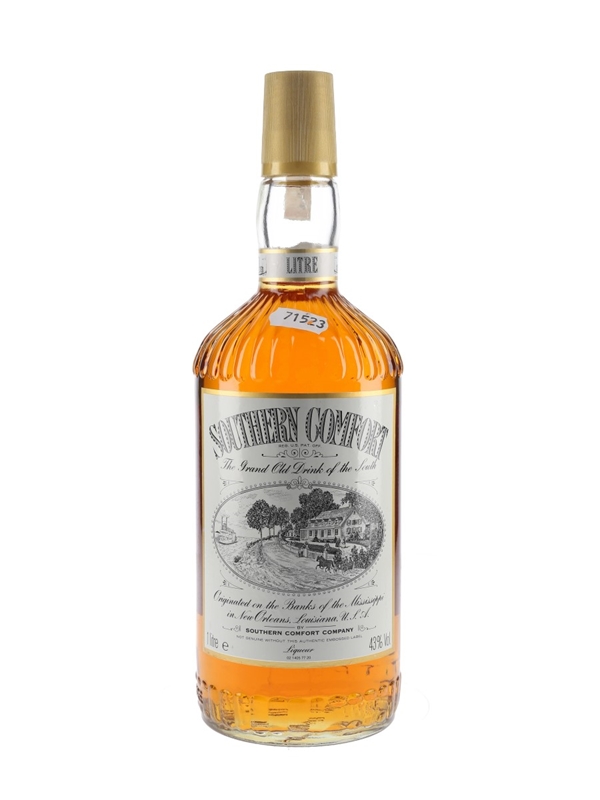 A litre bottle of Southern Comfort, The Grand Old Drink of the South, bottled at 43% ABV. We estimate this was bottled in the 1980s.