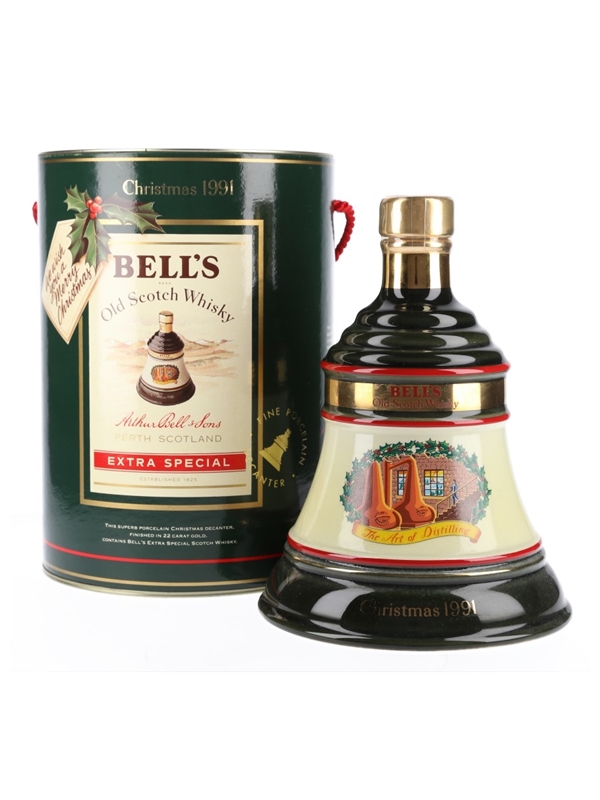 A bottle of Bell's Extra Special Old Scotch Whisky presented in a ceramic decanter and released for Christmas 1991, The Art of Distilling.