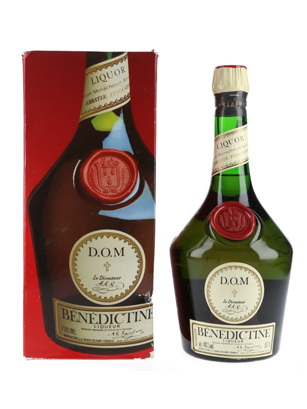 A bottle of Bénédictine DOM liqueur from France. This was imported to the UK by Matthew Clark and Sons Ltd. We estimate this was bottled in the 1990s.