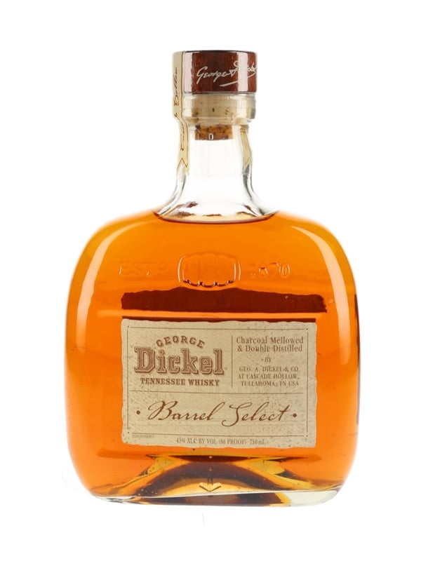 A bottle of George Dickel Barrel Select Tennessee Whiskey, bottled in 2006 from 10 barrels selected by distiller John Lunn.