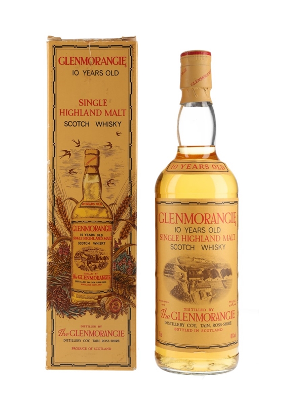 A bottle of The Glenmorangie 10 Year Old Single Highland Malt Scotch Whisky. We estimate this was bottled in the 1980s.