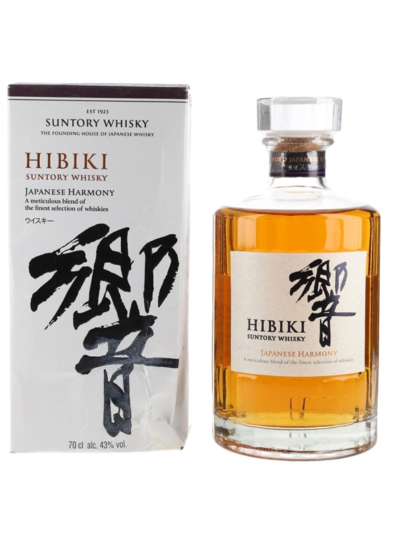 A bottle of Suntory Hibiki Japanese Harmony. This was imported to the UK by Beam Suntory UK Ltd.