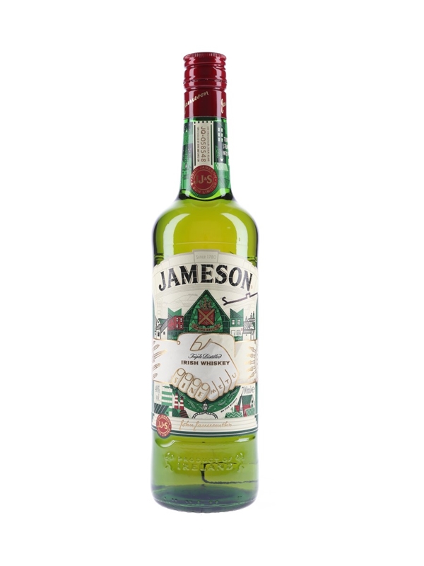A bottle of Jameson Triple Distilled Irish Whiskey, released for St Patrick's Day 2017 with a label designed by Dublin artist Steve McCarthy.