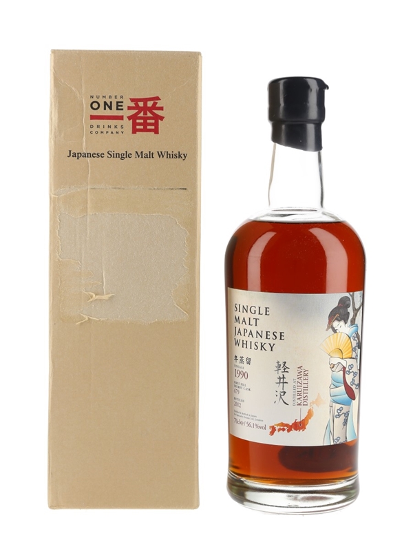 A bottle of Karuizawa 1990 Japanese Whisky, matured in a first-fill sherry casks and bottled at 56.1% ABV in 2012 by Number One Drinks Company Limited.