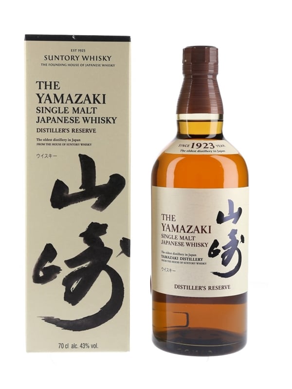 A bottle of Yamazaki Distiller's Reserve Single Malt Whisky, a vatting of whiskies aged in three different cask types: wine, sherry and Mizunara oak. This was imported by Beam Suntory UK Ltd.