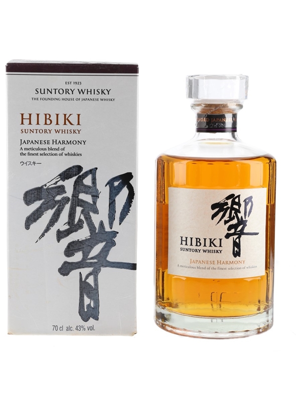 A bottle of Suntory Hibiki Japanese Harmony Whisky.