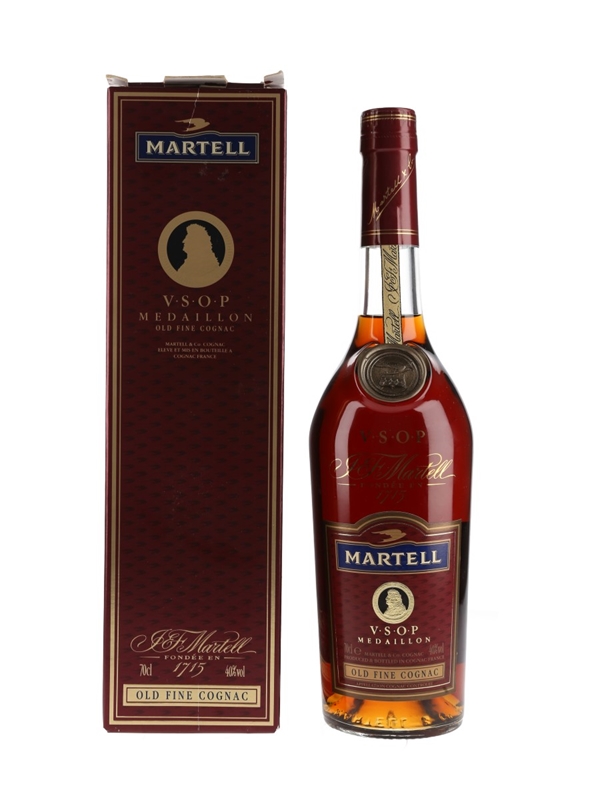 A bottle of Martell VSOP Medaillon Old Fine Cognac.