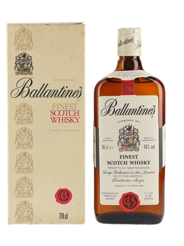 A bottle of Ballantine's Finest Scotch whisky, produced by George Ballantine & Son Limited. This was imported to Italy by Spirit, we estimate in the 1990s.