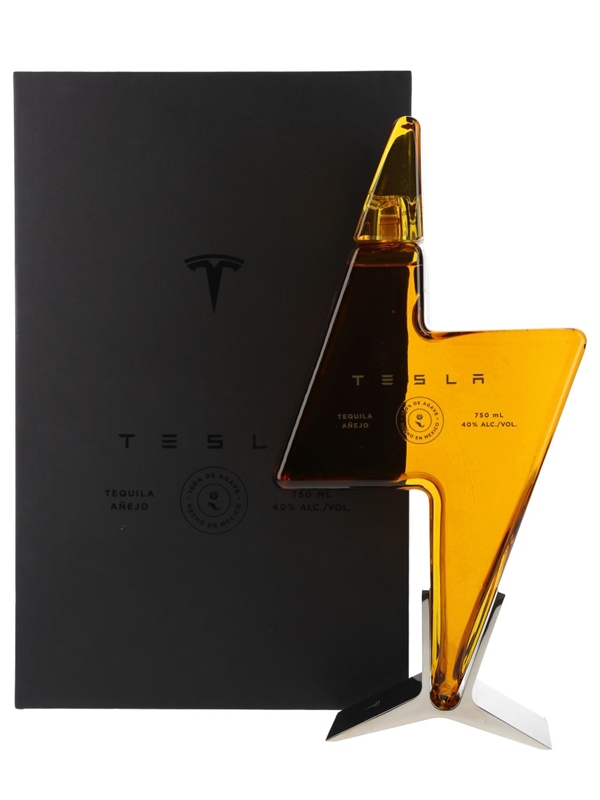 A bottle of Tesla Tequila Anejo, produced in partnership with Nosotros Tequila.