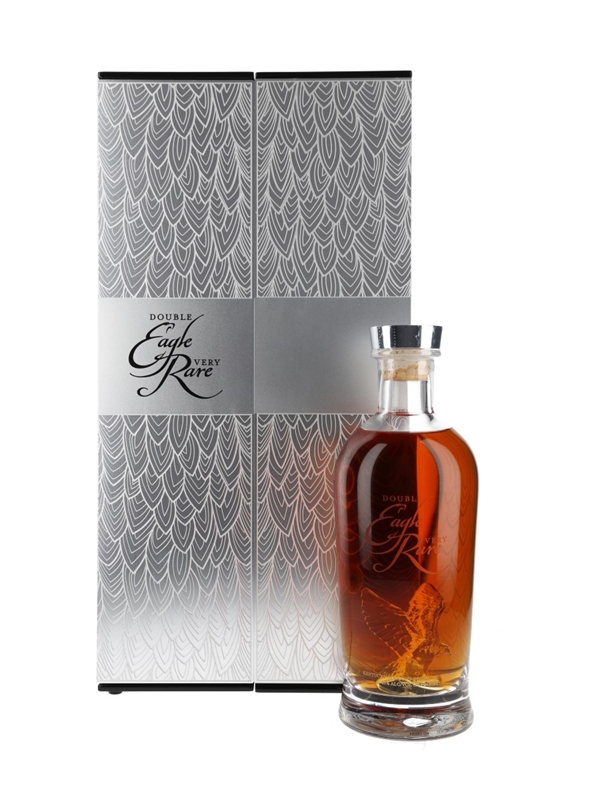 A limited edition bottle of Eagle Rare Double Eagle Very Rare 20 Year Old Kentucky Straight Bourbon Whiskey, bottled by Buffalo Trace Distillery. This is presented in a crystal bottle with a eagle shaped stopper in a light up wooden presentation box.