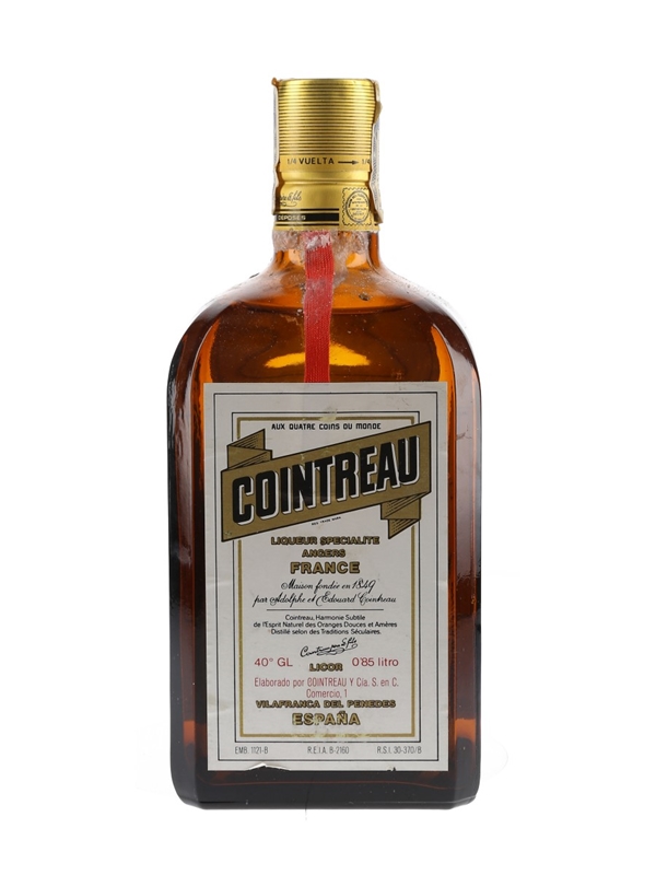 An 85cl bottle of Cointreau, an orange liqueur first produced in 1875. This particular bottle was produced in Vilafranca Del Pededes, Spain, we estimate in the 1980s.