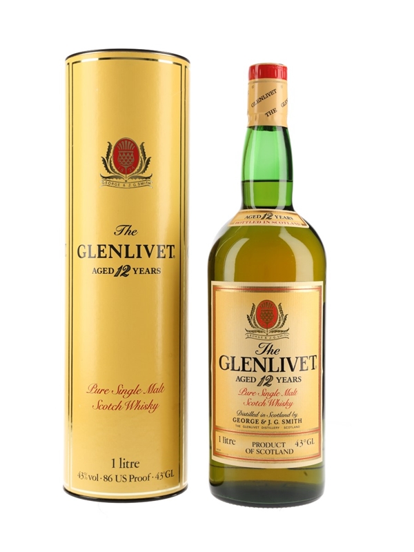 A litre bottle of The Glenlivet 12 Year Old. We estimate this was bottled in the early 1980s.