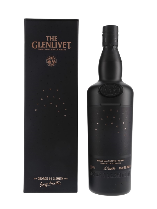 The Glenlivet Code followed the Alpha and Cipher releases and encourages the drinker to taste the whisky without preconceptions. It is presented in an opaque black bottle, without tasting notes or cask information.