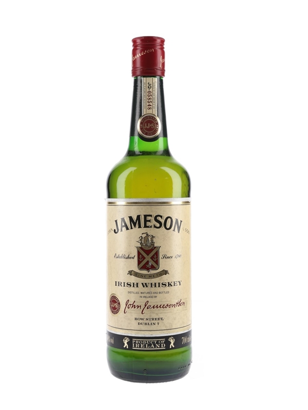 A bottle of Jameson Triple Distilled Irish Whiskey. We estimate this was bottled in the 1990s.