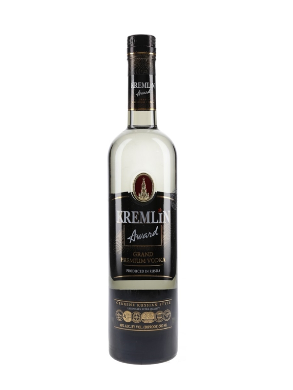 A 50cl bottle of Kremlin Award Grand Premium Vodka produced in Russia.