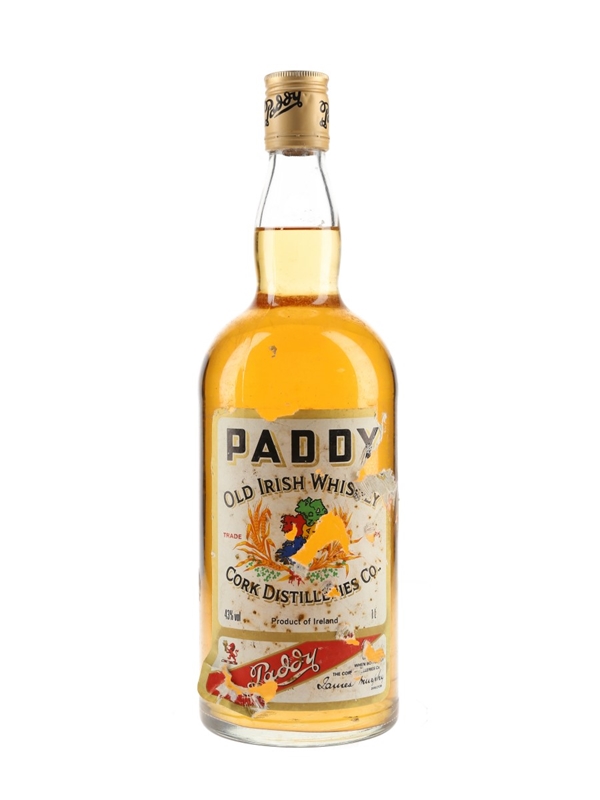 A litre bottle of Paddy Old Irish Whisky, distilled and bottled by Cork Distilleries Co. We estimate this was bottled in the 1980s.