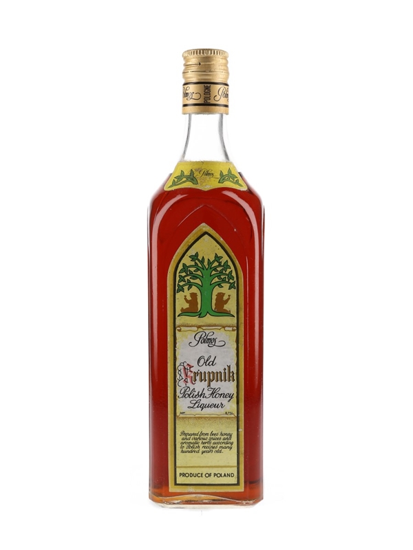 A bottle of Old Krupnik Polish Honey Liqueur, flavoured with herbs and spices and produced by Polmos. We estimate this was bottled in the 1980s.