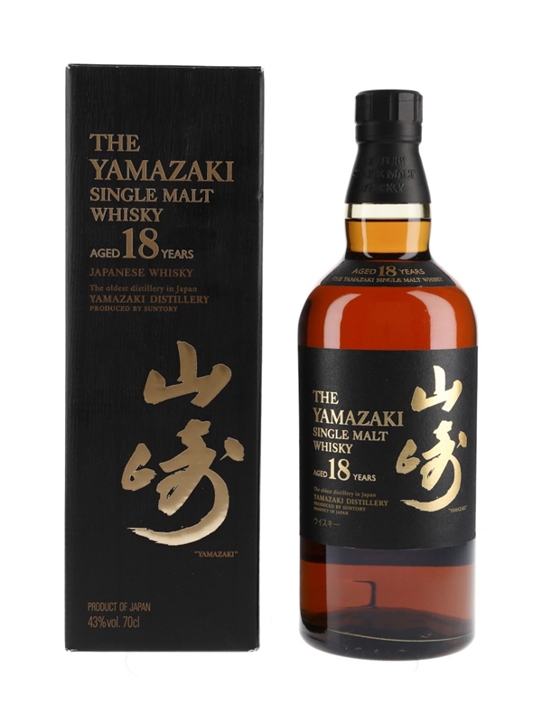 A bottle of The Yamazaki 18 Year Old Single Malt Japanese Whisky, imported to the UK by Morrison Bowmore Distillers Ltd.