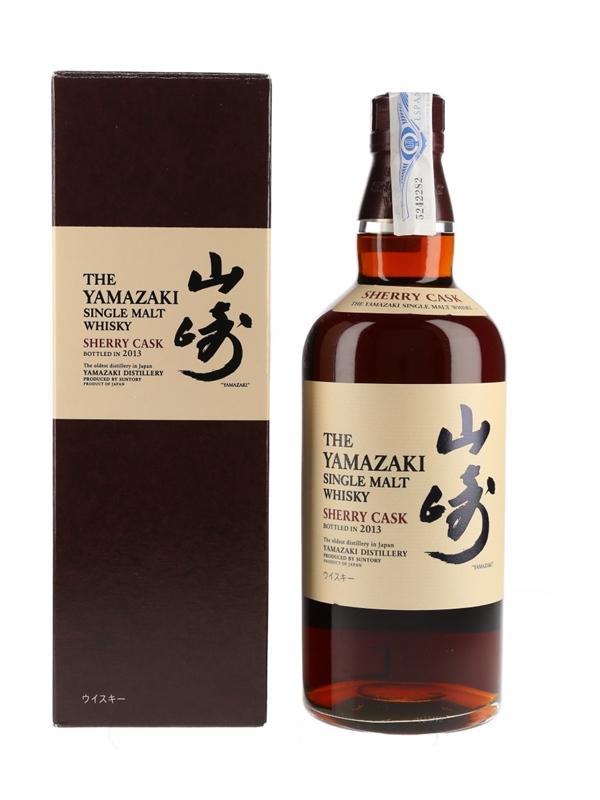 A bottle of The Yamazaki Sherry Cask Single Malt Whisky, produced by Suntory, Japan and bottled in 2013.