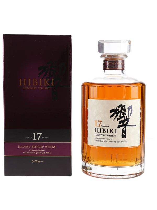A bottle of Hibiki 17 Year Old Suntory Japanese blended whisky. This was imported to the UK by Morrison Bowmore Distillers Limited.
