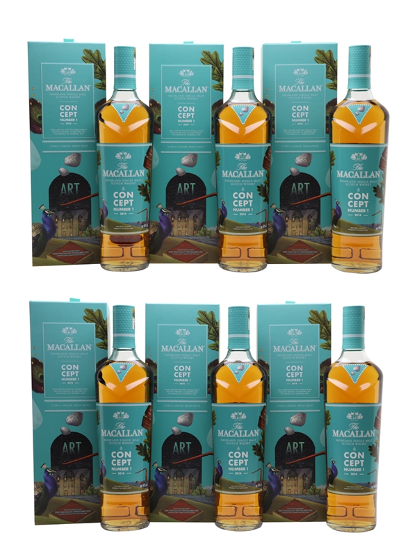 A case of six bottles of The Macallan Concept Number 1 Highland Single Malt Scotch Whisky, a 2018 release inspired by surreal art. This is made from whiskies matured first in sherry seasoned oak casks and then for an equal period in ex-bourbon casks.