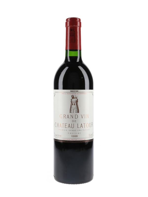 A bottle of 1988 Grand Vin de Château Latour from Bordeaux's Pauillac appellation from one of the most lauded vintages of the 20th Century.