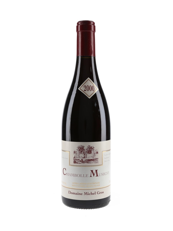 A bottle of 2000 Chambolle Musigny red Burgundy from Domaine Michel Gros.
