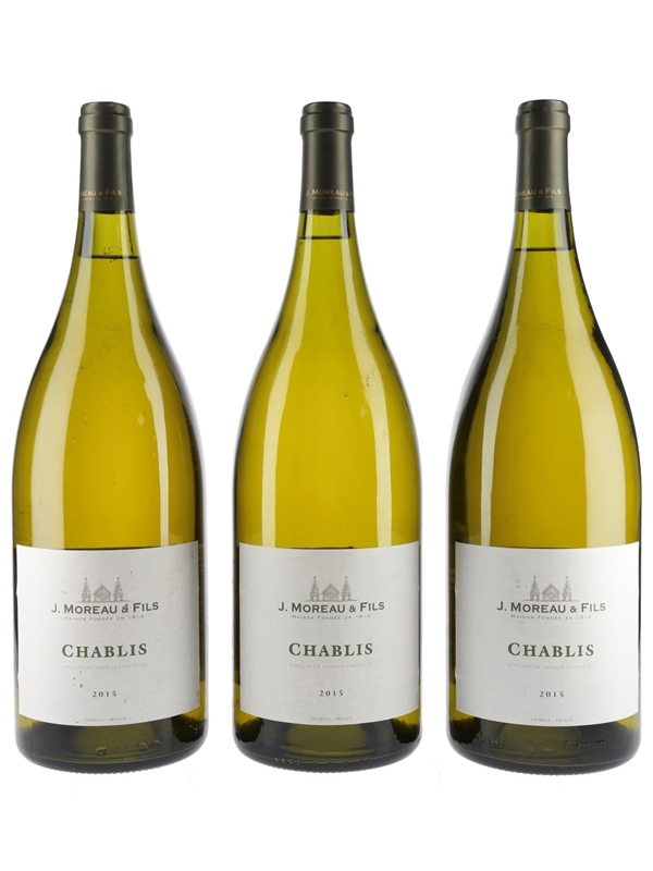 This lot contains three magnum bottles of J Moreau & Fils Chablis 2015.