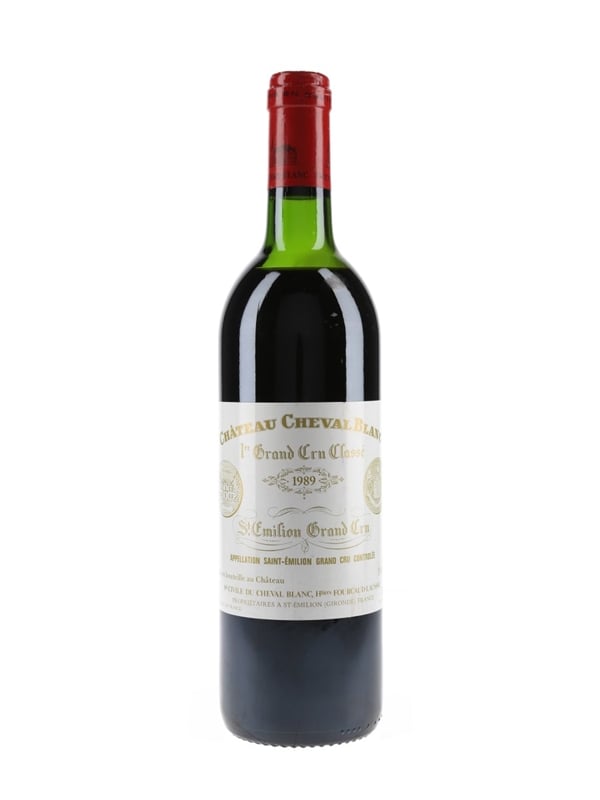 A bottle of 1989 Château Cheval Blanc Saint-Emilion 1er Grand Cru Classé.