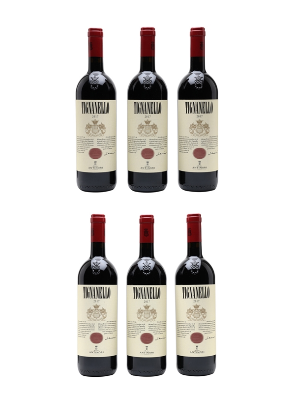 This lot contains six bottles of 2017 Antinori Tignanello, a Sangiovese blend from Tuscany.