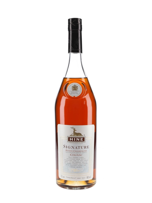 A litre bottle of Hine Signature Petite Champagne Cognac. This was produced exclusively from grapes grown in Petite Champagne, the 2nd Cru of Cognac.