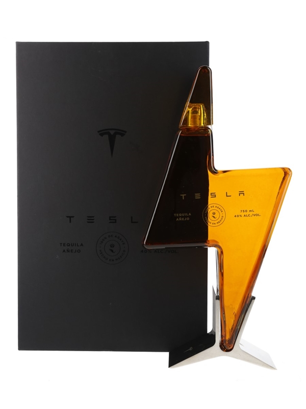 A bottle of Tesla Tequila Anejo, produced in partnership with Nosotros Tequila.