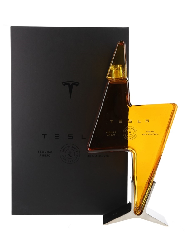 A bottle of Tesla Tequila Anejo, produced in partnership with Nosotros Tequila.