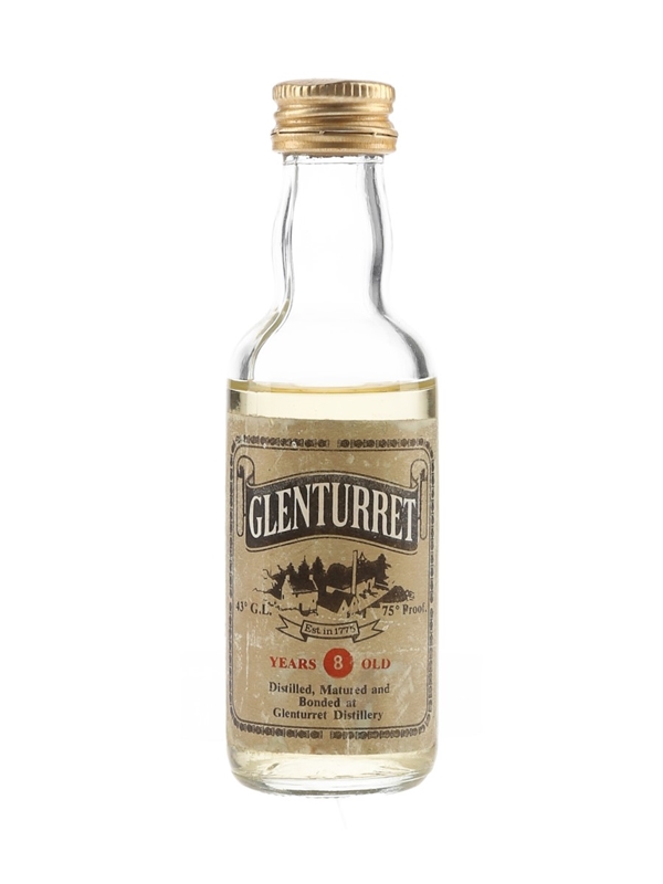 A miniature bottle of Glenturret 8 Year Old Single Malt Scotch Whisky. We estimate this was bottled in the 1970s to 1980s.