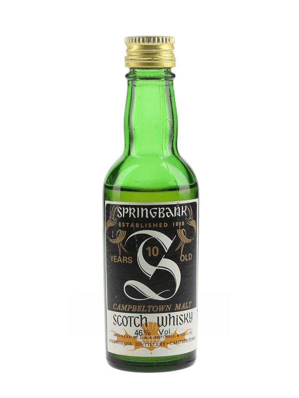 A miniature bottle of Springbank 10 Year Old Campbeltown Malt Scotch Whisky. We estimate this was bottled in the 1980s.
