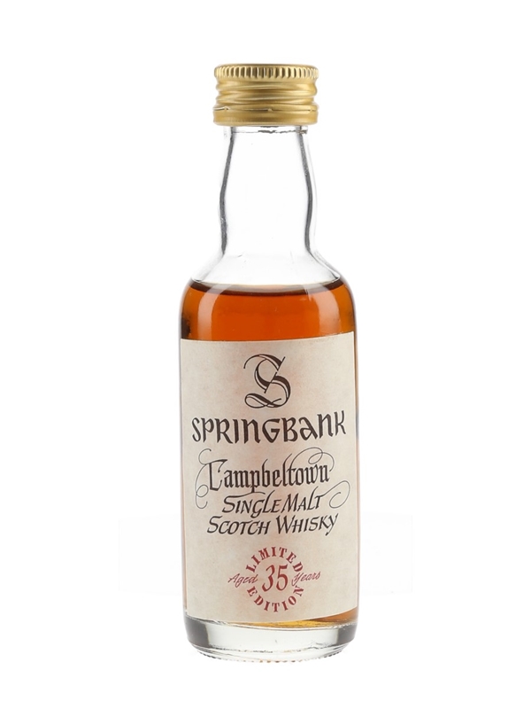 A miniature bottle of Springbank 35 Year Old Campbeltown Single Malt Scotch Whisky.