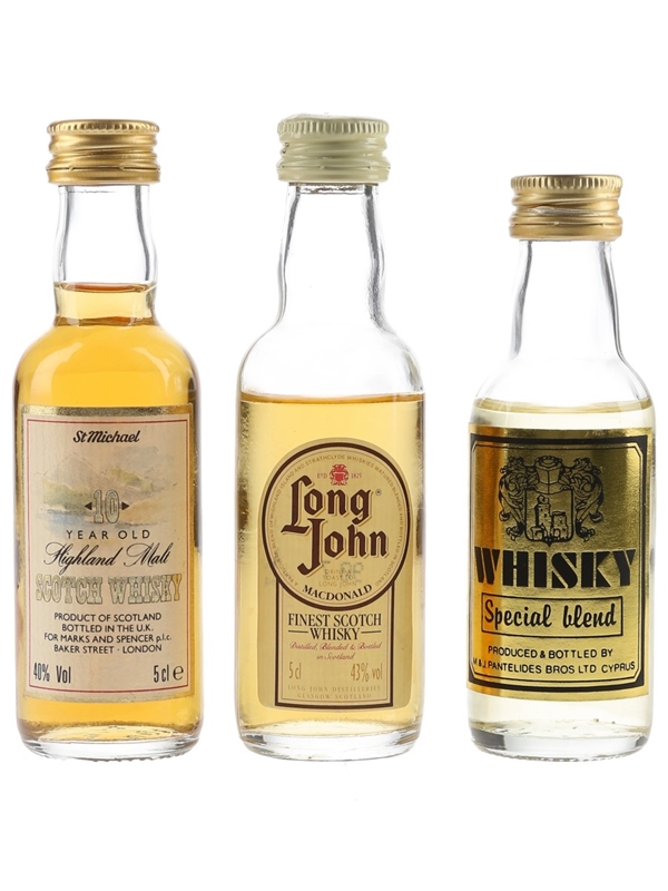 Assorted Blended Scotch Whisky Whisky Special Blend, Long John, St Michael 10 Year Old 3 x 5cl