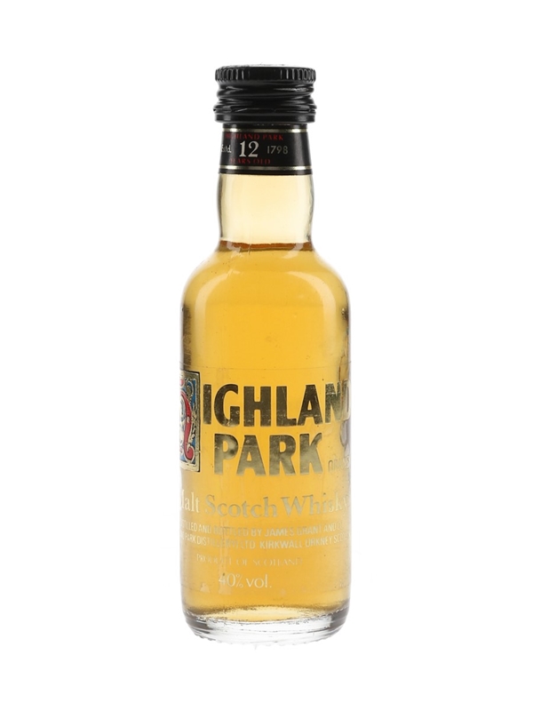 A miniature bottle of Highland Park 12 Year Old Malt Scotch Whisky. We estimate this was bottled in the 1980s.