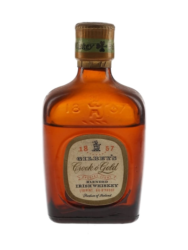 A miniature bottle of Gilbey's Crock O' Gold, distilled, blended and bottled in Ireland by Gilbey's Limited. We estimate this was bottled in the 1950s.