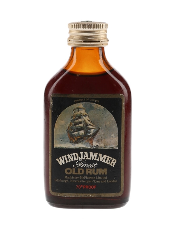 A miniature bottle of Windjammer Finest Old Rum, produce of Guyana, bottled by Mackinlay-McPherson Limited. We estimate this was bottled in the 1970s.