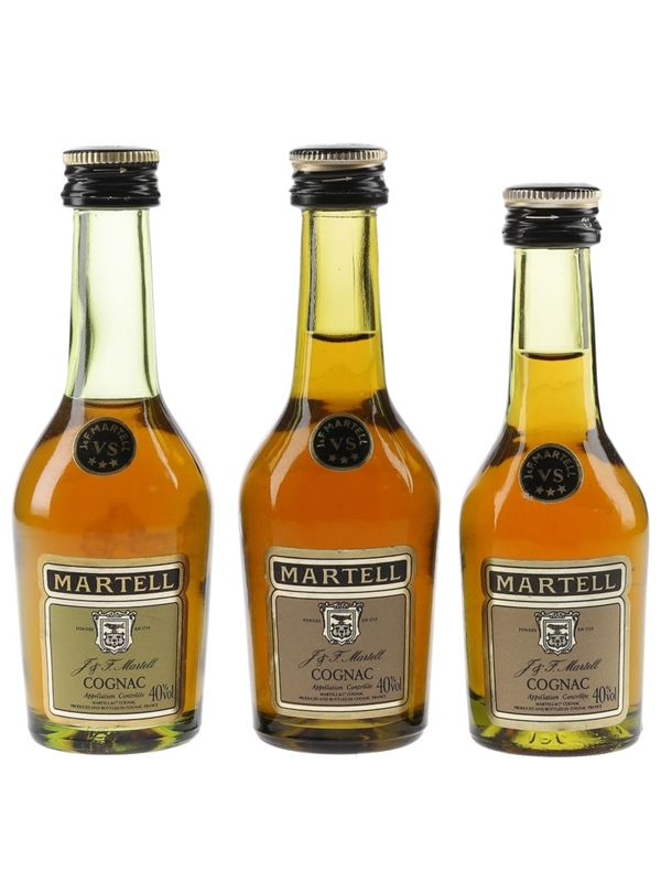 This lot contains three miniature bottles of Martell 3 Star VS Cognac.
