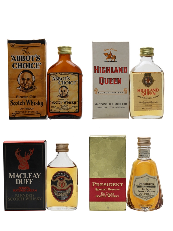 Abbot's Choice, Highland Queen, Macleay Duff & President Special Reserve Bottled 1970s 4 x 5cl / 40%