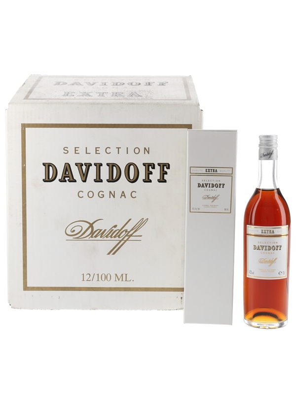 A case of twelve 10cl bottles of Davidoff Selection Extra Cognac. We estimate these were bottled in the 1990s.