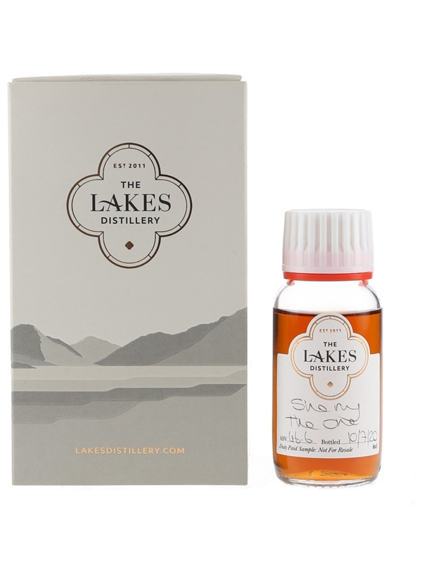 A sample miniature bottle of The Lakes Distillery Whisky produced in England. This was bottled on 10 July 2020 at 46.6% ABV.