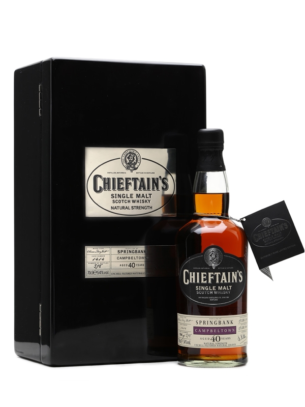 An incredible high cask-strength 40-year-old Springbank 1968 bottled for the Chieftain's range from a single oloroso sherry butt.