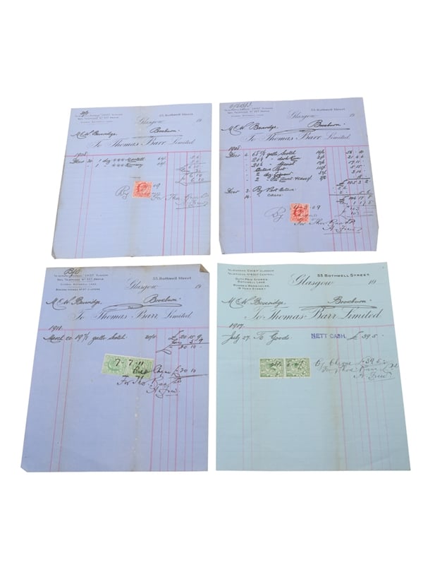 Thomas Barr Limited Invoices, Dated 1908-1917