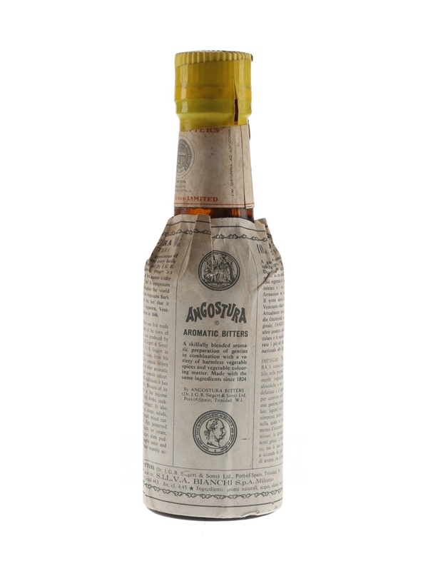 A 10cl bottle of Angostura Aromatic Bitters, produced in Trinidad by Dr J G B Siegert & Sons.
