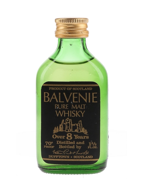 A miniature bottle of Balvenie 8 Year Old Pure Malt Whisky, produced by William Grant & Sons. We estimate this was bottled in the 1970s.