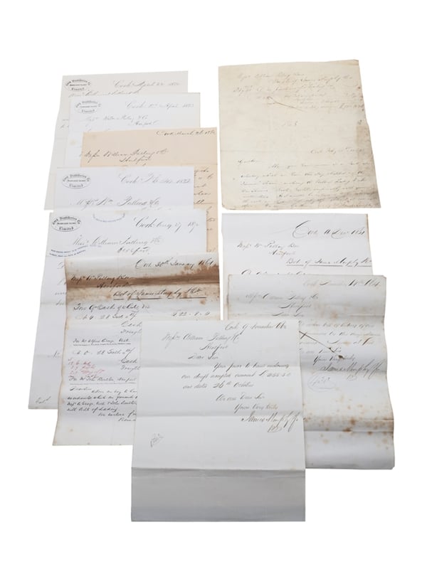 This lot contains ten letters from Cork Distilleries Co. Ltd. to William Pulling & Co., dated 1864 to 1872. The letters cover a variety of topics including conformation of orders, payments and shipping.