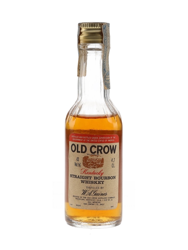 A miniature bottle of Old Crow Kentucky Straight Bourbon Whiskey. The bottling code indicates the bottle was made in 1971.